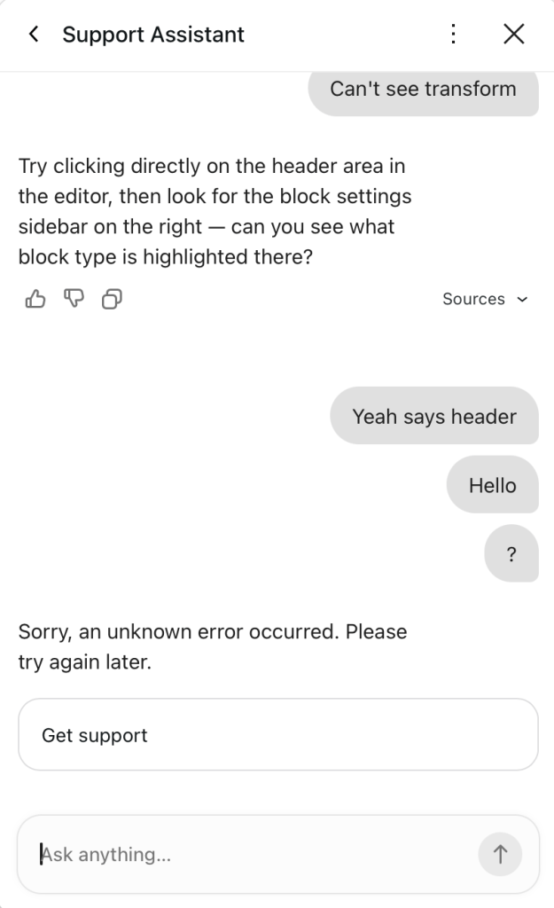 I think the AI assistant literally just quit on me because I kept not finding what it was telling me to select. Please see below how our conversation just ended.